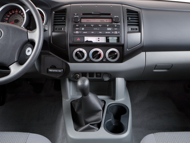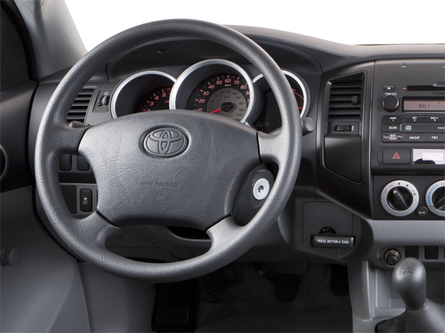 2010 Toyota Tacoma Base 15 x 6J+45 Steel Disc Wheels, 3.31 Axle Ratio, 4 Speakers, ABS brakes, AM/FM radio, AM/FM/CD w/4 Speakers, Bench Seat, Brake assist, CD player, Driver door bin, Dual front impact airbags, Dual front side impact airbags, Electronic Stability Control, Fabric Seat Trim, Front anti-roll bar, Front wheel independent suspension, Low tire pressure warning, Occupant sensing airbag, Overhead airbag, Passenger door bin, Passenger vanity mirror, Power steering, Rear step bumper, Tachometer, Telescoping steering wheel, Tilt steering wheel, Traction control.