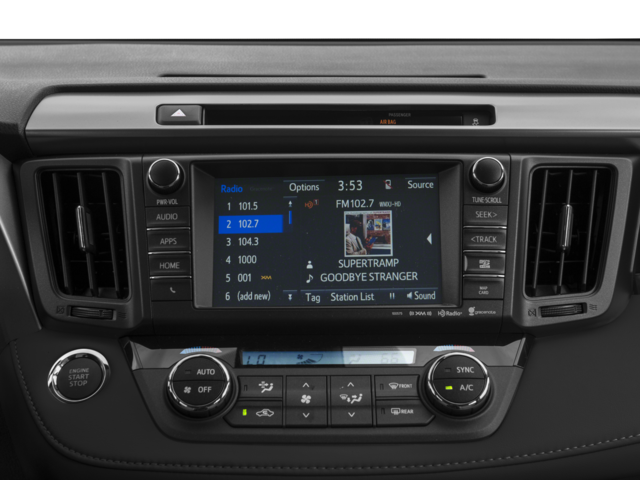 2016 Toyota RAV4 Limited 4-Wheel Disc Brakes, 4.071 Axle Ratio, 6 Speakers, ABS brakes, Air Conditioning, All Weather Floor Liners & Cargo Tray, Alloy wheels, AM/FM radio: SiriusXM, Auto High-beam Headlights, Auto-dimming Rear-View mirror, Automatic temperature control, Brake assist, Bumpers: body-color, Compass, Driver door bin, Driver vanity mirror, Dual front impact airbags, Dual front side impact airbags, Electronic Stability Control, Exterior Parking Camera Rear, Four wheel independent suspension, Front anti-roll bar, Front Bucket Seats, Front Center Armrest, Front dual zone A/C, Front fog lights, Front reading lights, Fully automatic headlights, Garage door transmitter: HomeLink, Heated door mirrors, Heated front seats, Heated Front Sport Seats, Illuminated entry, Knee airbag, Lane Departure Warning System, Leather Shift Knob, Leather steering wheel, Low tire pressure warning, Memory seat, Mudguards, Navigation System, Occupant sensing airbag, Outside temperature display, Overhead airbag, Overhead console, Panic alarm, Passenger door bin, Passenger vanity mirror, Power door mirrors, Power driver seat, Power Liftgate, Power moonroof, Power steering, Power windows, Radio data system, Radio: Entune Premium Audio with Navigation, Rear anti-roll bar, Rear seat center armrest, Rear window defroster, Rear window wiper, Remote keyless entry, Roof rack: rails only, SofTex Seat Trim, Speed control, Speed-sensing steering, Split folding rear seat, Spoiler, Steering wheel mounted audio controls, Tachometer, Telescoping steering wheel, Tilt steering wheel, Traction control, Trip computer, Turn signal indicator mirrors, Variably intermittent wipers, Wheels: 18 Alloy ALM.