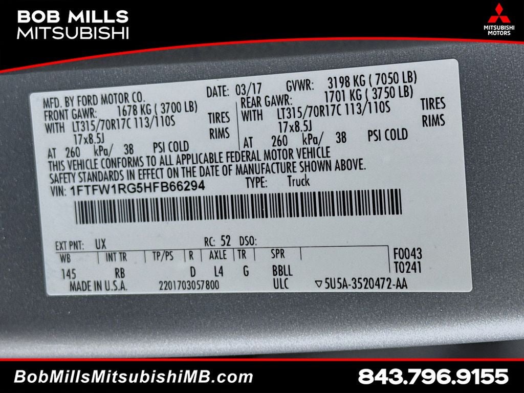 2017 Ford F-150 Raptor 10-Way Power Driver & Passenger Seats, 17 Cast Aluminum Wheels, 360 Degree Camera, 4-Wheel Disc Brakes, 4.10 Front Axle w/Torsen Differential, 7 Speakers, 8-Way Power Driver's Seat w/Power Lumbar, ABS brakes, Advanced Security Pack, Air Conditioning, Alloy wheels, AM/FM radio: SiriusXM, Ambient Lighting, Auto-dimming Rear-View mirror, BLIS Blind Spot Information System, Brake assist, CD player, Compass, Delay-off headlights, Driver door bin, Driver vanity mirror, Dual front impact airbags, Dual front side impact airbags, Dual-Zone Electronic Automatic Temperature Control, Electronic Locking w/4.10 Axle Ratio, Electronic Stability Control, Equipment Group 802A Luxury, Exterior Parking Camera Rear, Front anti-roll bar, Front Bucket Seats, Front Center Armrest, Front fog lights, Front License Plate Bracket, Front reading lights, Front wheel independent suspension, Fully automatic headlights, Heated Leather 40/Console/40 Front Seats, Illuminated entry, Inflatable Rear Safety Belts, Integrated Trailer Brake Controller, Intelligent Access w/Push-Button Start, Leather steering wheel, LED Box Lighting, LED Side-Mirror Spotlights, Low tire pressure warning, Memory System (Seat, Pedal, Exterior Mirror), Occupant sensing airbag, Outside temperature display, Overhead airbag, Overhead console, Panic alarm, Passenger door bin, Passenger vanity mirror, Power door mirrors, Power driver seat, Power Glass Heated Sideview Mirrors, Power steering, Power Tilt/Telescoping Steering Column w/Memory, Power windows, Power-Adjustable Pedals, Power-Sliding Rear Window, Pro Trailer Backup Assist, Radio data system, Radio: Sony Single CD w/HD & SiriusXM Satellite, Rear Parking Sensors, Rear reading lights, Rear step bumper, Rear window defroster, Remote keyless entry, Remote Start System w/Remote Tailgate Release, Security system, Speed control, Speed-sensing steering, Split folding rear seat, Spray-In Bedliner (Pre-Installed), Steering wheel mounted audio controls, SYNC, SYNC 3, SYNC Connect, Tachometer, Tailgate Applique, Tailgate Step w/Tailgate Lift Assist, Telescoping steering wheel, Tilt steering wheel, Traction control, Trip computer, Twin Panel Moonroof, Unique Cloth/Leather Trim Seats, Universal Garage Door Opener, Variably intermittent wipers, Voice-Activated Navigation.