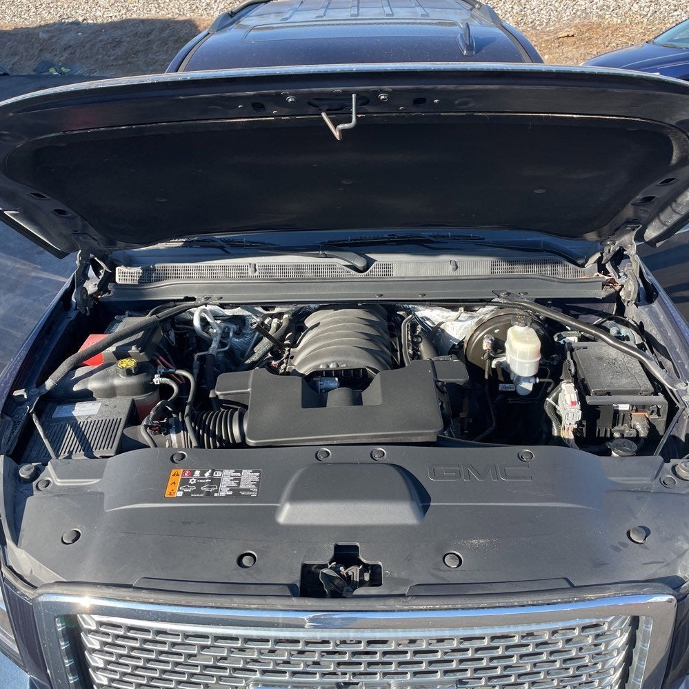 Dark Sapphire Blue Metallic 2017 GMC Yukon SLT 4WD 6-Speed Automatic Electronic with Overdrive EcoTec3 5.3L V8 4WD, 17 Disc/Disc VAC Power Brakes, 22 6-Spoke Split Chrome (LPO) Wheels, 3.08 Rear Axle Ratio, 3rd row seats: split-bench, 4-Wheel Disc Brakes, 5 Auxiliary 12-volt Power Outlets, 9 Speakers, ABS brakes, Adjustable pedals, Air Conditioning, Alloy wheels, AM/FM radio: SiriusXM, Apple CarPlay/Android Auto, Auto High-beam Headlights, Auto-dimming door mirrors, Auto-dimming Rear-View mirror, Automatic temperature control, Black Assist Steps w/Chrome Strip, Bose Premium 9-Speaker System, Brake assist, Bright Bodyside Moldings, Bumpers: body-color, CD Player, CD player, Chrome Grille Insert (LPO), Compass, Delay-off headlights, Driver door bin, Driver vanity mirror, Dual front impact airbags, Dual front side impact airbags, Electronic Stability Control, Emergency communication system: OnStar Guidance, Enhanced Driver Alert Package, Exterior Parking Camera Rear, Forward Collision Alert Sensor Indicator, Front anti-roll bar, Front Bucket Seats, Front Center Armrest, Front dual zone A/C, Front fog lights, Front reading lights, Front wheel independent suspension, Full-Feature Reclining Bucket Seats, Fully automatic headlights, Garage door transmitter, Hands Free Power Liftgate, Heated & Ventilated Driver & Front Passenger Seats, Heated door mirrors, Heated front seats, Heated Leather-Wrapped Steering Wheel, Heated rear seats, Heated steering wheel, Illuminated entry, Inside Rear-View Auto-Dimming Mirror, Intellibeam Automatic High Beam On/Off Headlamps, Lane Keep Assist, Low Speed Forward Automatic Braking, Low tire pressure warning, Memory Package, Memory seat, NavTraffic, Occupant sensing airbag, OnStar Basic Plan For 5 Years, OnStar w/4G LTE, Open Road Package, Outside temperature display, Overhead airbag, Overhead console, Panic alarm, Passenger door bin, Passenger vanity mirror, Passive Entry System, Pedal memory, Perforated Leather-Appointed Seat Trim, Polished Exhaust Tip, Power door mirrors, Power driver seat, Power Liftgate, Power passenger seat, Power Release 2nd Row 60/40 Split-Folding Bench Seat, Power Release Second Row Bucket Seats, Power steering, Power Tilt & Telescopic Steering Column, Power Tilt-Sliding Sunroof w/Express-Open/Close, Power windows, Power-Adjustable Pedals For Accelerator & Brake, Preferred Equipment Group 4SA, Premium audio system: IntelliLink, Premium Edition, Premium Smooth Ride Suspension Package, Push Button Keyless Start, Radio: AM/FM/SiriusXM, Radio: AM/FM/SiriusXM w/Navigation, Rain sensing wipers, Rear air conditioning, Rear anti-roll bar, Rear Cross-Traffic Alert, Rear reading lights, Rear Seat Blu-Ray/DVD Entertainment System, Rear seat center armrest, Rear window defroster, Rear window wiper, Remote Keyless Entry, Remote keyless entry, Roof rack: rails only, Security system, Side Blind Zone Alert w/Lane Change Alert, SiriusXM Satellite Radio, Speed control, Speed-sensing steering, Split folding rear seat, Spoiler, Steering wheel memory, Steering wheel mounted audio controls, Tachometer, Telescoping steering wheel, Tilt steering wheel, Traction control, Trip computer, Turn signal indicator mirrors, Universal Home Remote, Variably intermittent wipers, Ventilated front seats, Voltmeter, Wheels: 18 x 8.5 Bright Machined Aluminum, Wheels: 22 x 9 Steel Interim (LPO), Wireless Charging, 4WD.