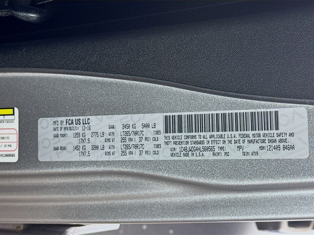 2017 Jeep Wrangler Unlimited Sport 1-Yr SiriusXM Radio Service, 16 x 7.0 Luxury Styled Steel Wheels, 17 x 7.5 Aluminum Wheels, 3.21 Rear Axle Ratio, 4-Wheel Disc Brakes, 8 Speakers, ABS brakes, Air Conditioning, AM/FM radio, Auto-Dimming Mirror w/Reading Lamp, BF Goodrich Brand Tires, Black 3-Piece Hard Top, Brake assist, CD player, Chrome/Leather Wrapped Shift Knob, Cloth Seats w/Adjustable Head Restraints, Cold Weather Group, Compass, Connectivity Group, Deep Tint Sunscreen Windows, Delete Sunrider Soft Top, Driver door bin, Driver vanity mirror, Dual front impact airbags, Electronic Stability Control, Engine Block Heater, Freedom Panel Storage Bag, Front 1-Touch Down Power Windows, Front anti-roll bar, Front Bucket Seats, Front Center Armrest w/Storage, Front fog lights, Heated Front Seats, Integrated roll-over protection, Leather Wrapped Steering Wheel, Low tire pressure warning, MOPAR Slush Mats, Normal Duty Suspension, Occupant sensing airbag, Outside temperature display, Passenger door bin, Passenger vanity mirror, Power Convenience Group, Power Heated Mirrors, Power Locks, Power steering, Quick Order Package 24S, Radio: 130, Rear anti-roll bar, Rear Window Defroster, Rear Window Wiper/Washer, Remote Keyless Entry, Remote Start System, Remote USB Port, Security Alarm, SIRIUS Satellite Radio, Speed control, Split folding rear seat, Steering wheel mounted audio controls, Tachometer, Tilt steering wheel, Tire Pressure Monitoring Display, Traction control, Trip computer, Uconnect Voice Command w/Bluetooth®, Variably intermittent wipers, Vehicle Information Center.