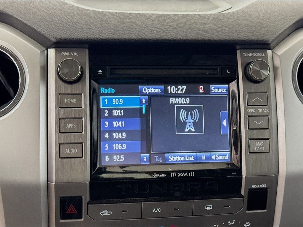 2017 Toyota Tundra SR5 CrewMax 18 x 8J Styled Steel Wheels, 3-Passenger Front Bench Seat, 4-Wheel Disc Brakes, 4.30 Axle Ratio, 6 Speakers, ABS brakes, Air Conditioning, AM/FM radio: SiriusXM, Brake assist, CD player, Driver door bin, Driver vanity mirror, Dual front impact airbags, Dual front side impact airbags, Electronic Stability Control, Exterior Parking Camera Rear, Fabric Seat Trim, Front anti-roll bar, Front Center Armrest w/Storage, Front fog lights, Front reading lights, Front wheel independent suspension, Heated door mirrors, Illuminated entry, Knee airbag, Low tire pressure warning, Occupant sensing airbag, Outside temperature display, Overhead airbag, Overhead console, Panic alarm, Passenger door bin, Passenger vanity mirror, Power door mirrors, Power steering, Power windows, Radio: Entune Audio Display AM/FM/HD w/CD Player, Rear reading lights, Rear seat center armrest, Rear step bumper, Rear window defroster, Remote keyless entry, SIRIUSXM Satellite Radio, Speed control, Speed-sensing steering, Split folding rear seat, Steering wheel mounted audio controls, Tachometer, Tilt steering wheel, Traction control, Trip computer, Variably intermittent wipers, Voltmeter.