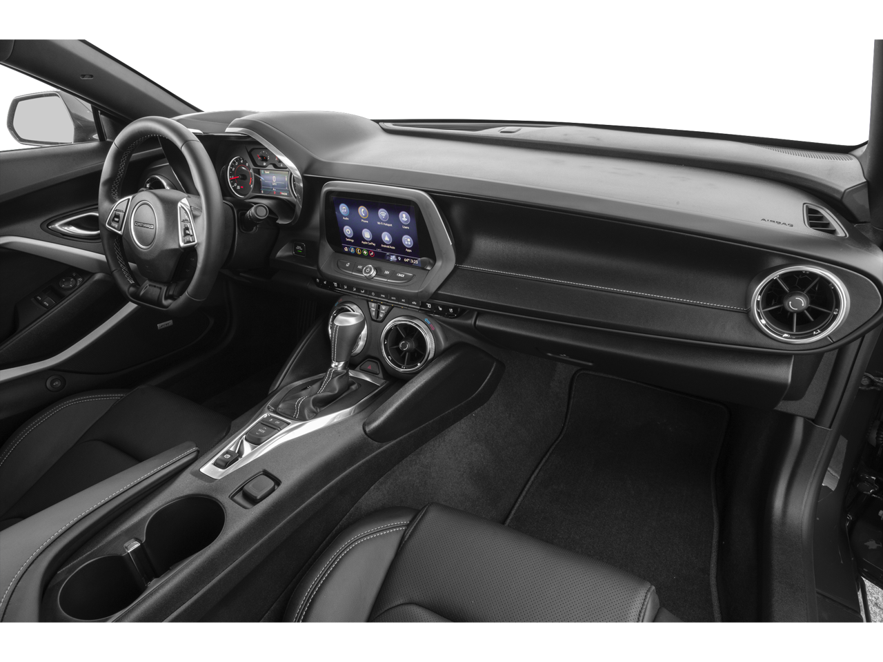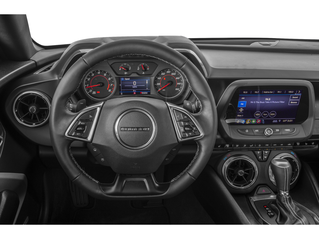 Satin Steel Gray Metallic 2019 Chevrolet Camaro 1LT RWD 8-Speed Automatic 3.6L V6 DI 18 Silver-Painted Aluminum Wheels, 2.77 Rear Axle Ratio, 4-Wheel Disc Brakes, 6 Speakers, 6-Speaker Audio System Feature, 6-Way Power Front Passenger Seat Adjuster, 8-Way Power Driver Seat Adjuster, ABS brakes, Air Conditioning, Alloy wheels, AM/FM radio: SiriusXM, Apple CarPlay/Android Auto, Automatic temperature control, Black Appearance Package, Black Front & Rear Bowtie Emblems (LPO), Bluetooth® For Phone, Brake assist, Bumpers: body-color, Cloth Seat Trim, Compass, Decklid-Mounted Lip Spoiler, Delay-off headlights, Driver door bin, Driver vanity mirror, Dual front impact airbags, Dual front side impact airbags, Electronic Stability Control, Exterior Parking Camera Rear, Four wheel independent suspension, Front anti-roll bar, Front Bucket Seats, Front Center Armrest, Front reading lights, Front Sport Bucket Seats, Fully automatic headlights, Illuminated entry, Knee airbag, Leather Shift Knob, Low tire pressure warning, Occupant sensing airbag, Overhead airbag, Paddle-Shift Manual Controls, Panic alarm, Passenger door bin, Passenger vanity mirror, Power door mirrors, Power driver seat, Power passenger seat, Power steering, Power windows, Preferred Equipment Group 1LT, Premium audio system: Chevrolet Infotainment System, Radio data system, Radio: Chevrolet Infotainment 3 System, Rear anti-roll bar, Rear window defroster, Remote keyless entry, Remote Vehicle Starter System, Security system, SiriusXM Radio, Speed control, Speed-sensing steering, Steering wheel mounted audio controls, Tachometer, Telescoping steering wheel, Tilt steering wheel, Tire Inflation Kit, Traction control, Trip computer, Variably intermittent wipers, Voltmeter, Wheels: 20 5-Spoke Carbon Flash Painted Alum.