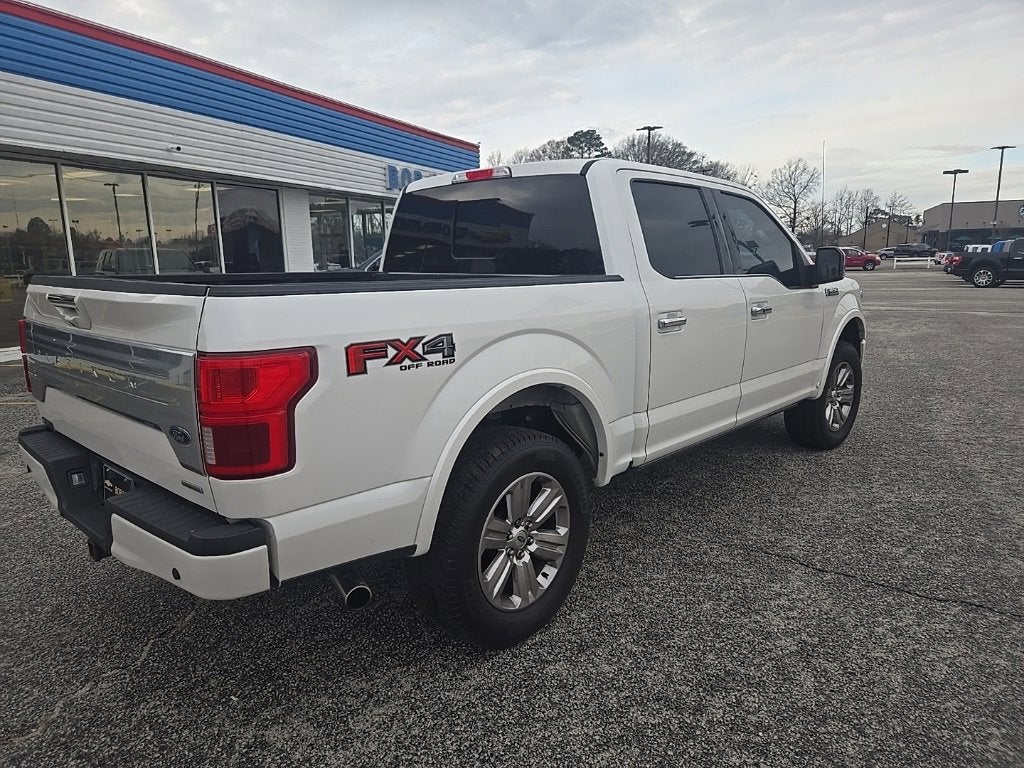 White Platinum 2019 Ford F-150 Platinum 4WD 10-Speed Automatic 3.5L V6 EcoBoost 4WD, 10 Speakers, 20 Polished Aluminum Wheels, 4-Wheel Disc Brakes, 4x4 FX4 Off-Road Bodyside Decal, ABS brakes, Active Park Assist, Adaptive Cruise Control, Adjustable pedals, Air Conditioning, Alloy wheels, AM/FM radio: SiriusXM, AppLink/Apple CarPlay and Android Auto, Auto High-beam Headlights, Auto tilt-away steering wheel, Auto-dimming door mirrors, Auto-dimming Rear-View mirror, Automatic temperature control, Black Unique Multi-Contour Leather Bucket Seats, Brake assist, Bumpers: body-color, Class IV Trailer Hitch Receiver, Compass, Delay-off headlights, Driver door bin, Driver vanity mirror, Dual front impact airbags, Dual front side impact airbags, Electronic Stability Control, Emergency communication system: SYNC 3 911 Assist, Engine Oil Cooler, Equipment Group 701A Luxury, Extended Range 36 Gallon Fuel Tank, Exterior Parking Camera Rear, Front anti-roll bar, Front Bucket Seats, Front Center Armrest, Front dual zone A/C, Front fog lights, Front License Plate Bracket, Front reading lights, Front wheel independent suspension, Fully automatic headlights, FX4 Off-Road Package, Garage door transmitter, Genuine wood door panel insert, GVWR: 7,050 lbs Payload Package, Heated door mirrors, Heated front seats, Heated rear seats, Heated steering wheel, Hill Descent Control, Illuminated entry, Integrated Trailer Brake Controller, Lane-Keeping System, Low tire pressure warning, Max Trailer Tow Package, Memory seat, Navigation System, Occupant sensing airbag, Off-Road Tuned Front Shock Absorbers, Outside temperature display, Overhead airbag, Overhead console, Panic alarm, Passenger door bin, Passenger vanity mirror, Pedal memory, Power door mirrors, Power driver seat, Power passenger seat, Power steering, Power windows, Pro Trailer Backup Assist, Radio data system, Radio: B&O Sound System by Bang & Olufsen, Rain sensing wipers, Rear Parking Sensors, Rear reading lights, Rear seat center armrest, Rear step bumper, Rear window defroster, Remote keyless entry, Security system, SiriusXM Radio, Speed control, Speed-sensing steering, Split folding rear seat, Steering wheel memory, Steering wheel mounted audio controls, SYNC 3, Tachometer, Tailgate Step w/Tailgate Lift Assist, Technology Package, Telescoping steering wheel, Tilt steering wheel, Tough Bed Spray-In Bedliner, Traction control, Tray Style Floor Liner, Trip computer, Turn signal indicator mirrors, Twin Panel Moonroof, Upgraded Front Stabilizer Bar, Variably intermittent wipers, Ventilated front seats, Voice-Activated Touchscreen Navigation, Voltmeter, 4WD.Odometer is 16979 miles below market average!