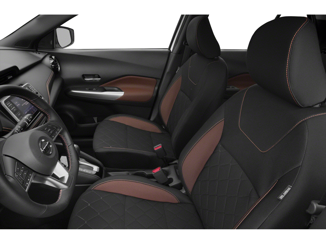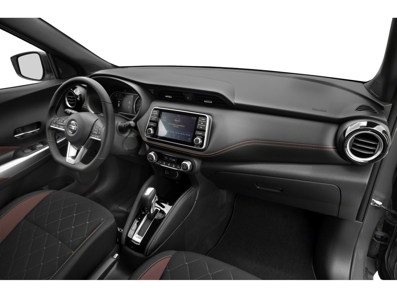 2019 Nissan Kicks SR 17 Alloy Wheels, 3.927 Axle Ratio, 6 Speakers, ABS brakes, Air Conditioning, Alloy wheels, AM/FM radio: SiriusXM, Automatic temperature control, Blind Spot Warning, Bose Personal Plus Audio System, Brake assist, Bumpers: body-color, Carpeted Floor Mats w/Cargo Mat, Cloth Seat Trim, Compass, Delay-off headlights, Driver door bin, Driver vanity mirror, Driver's Seat Mounted Armrest, Dual front impact airbags, Dual front side impact airbags, Electronic Stability Control, Front anti-roll bar, Front Bucket Seats, Front fog lights, Front reading lights, Front wheel independent suspension, Fully automatic headlights, Heated door mirrors, Heated Front Seats, Illuminated entry, Illuminated Kick Plates, Knee airbag, Leather Shift Knob, Low tire pressure warning, NissanConnect featuring Apple CarPlay and Android Auto, Occupant sensing airbag, Outside temperature display, Overhead airbag, Panic alarm, Passenger door bin, Passenger vanity mirror, Power door mirrors, Power steering, Power windows, Prima-Tex Appointed Seat Trim, Radio data system, Radio: AM/FM Audio System, Rear reading lights, Rear Roof Spoiler, Rear window defroster, Rear window wiper, Remote keyless entry, Roof rack: rails only, Security System, Speed control, Splash Guards Grain (4 Piece), Split folding rear seat, Spoiler, Sport steering wheel, SR Premium Package, Steering wheel mounted audio controls, Tachometer, Telescoping steering wheel, Tilt steering wheel, Traction control, Trip computer, Turn signal indicator mirrors, Variably intermittent wipers.