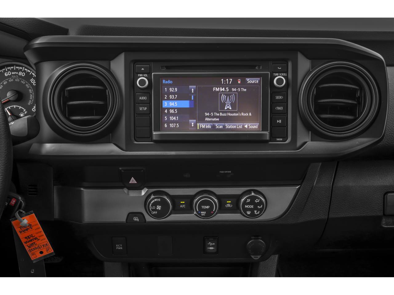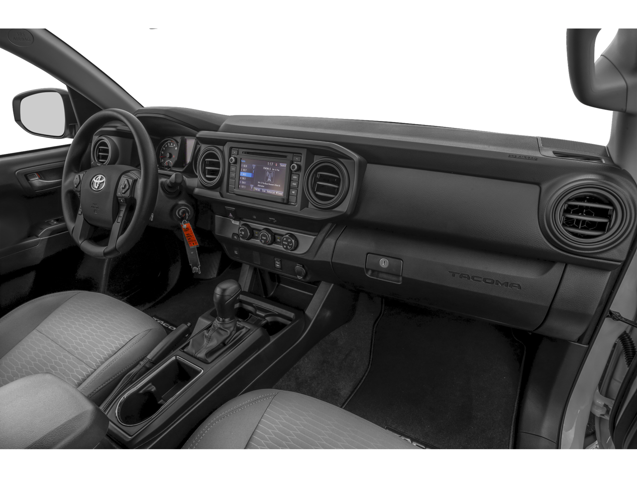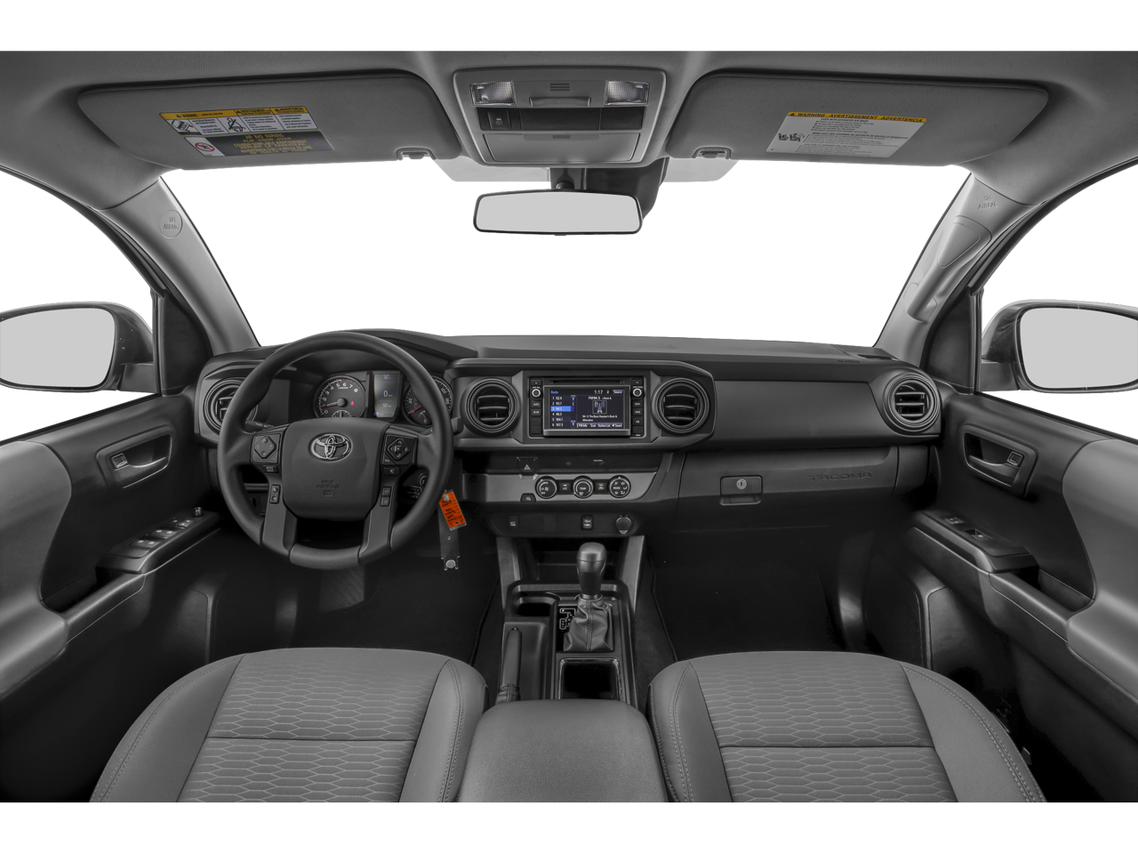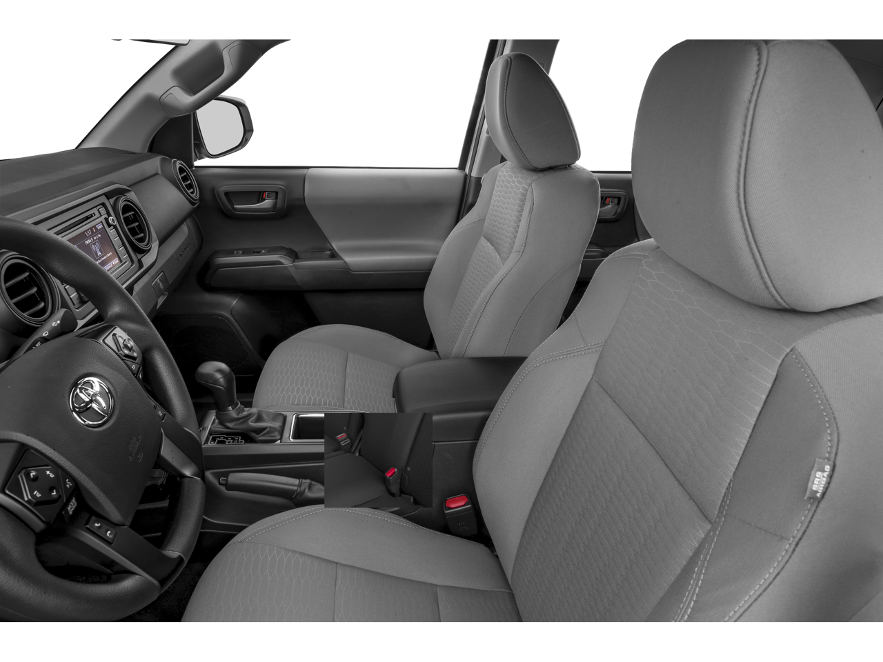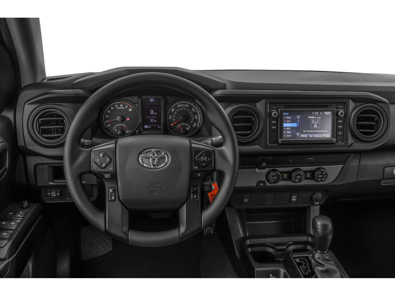 2019 Toyota Tacoma SR5 V6 16 Silver Alloy Wheels, 6 Speakers, ABS brakes, Air Conditioning, Alloy wheels, AM/FM radio: SiriusXM, Anti-whiplash front head restraints, Auto High-beam Headlights, Auto-dimming Rear-View mirror, Axle Ratio: 3.91, Brake assist, Bumpers: body-color, CD player, Chrome Rear Bumper, Color-Keyed Overfenders, Daytime Running Lamps, Driver door bin, Dual front impact airbags, Dual front side impact airbags, Electronic Stability Control, Exterior Parking Camera Rear, Fabric Seat Trim (FC), Front anti-roll bar, Front Bucket Seats, Front Center Armrest, Front Fog Lamps, Front fog lights, Front reading lights, Front wheel independent suspension, Illuminated entry, Knee airbag, Low tire pressure warning, Occupant sensing airbag, Outside temperature display, Overhead airbag, Overhead console, Panic alarm, Passenger door bin, Power door mirrors, Power Sliding Rear Window w/Privacy Glass, Power steering, Power windows, Radio: Entune Plus AM/FM/CD w/HD Radio, Rear step bumper, Remote keyless entry, Remote Keyless Entry System, Speed control, Speed-sensing steering, Split folding rear seat, SR5 Package, Steering wheel mounted audio controls, Tachometer, Telescoping steering wheel, Tilt steering wheel, Traction control, Trip computer, Variable Intermittent Wipers, Variably intermittent wipers.