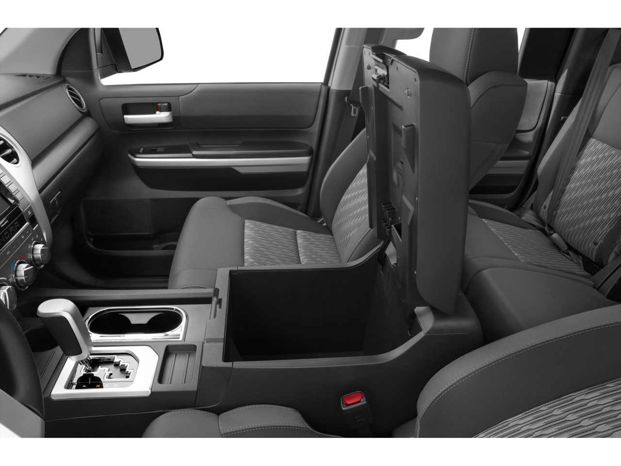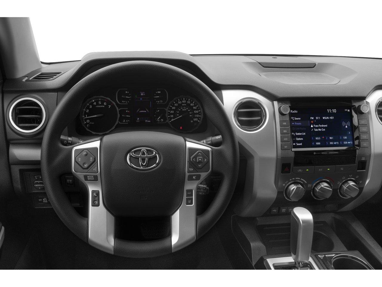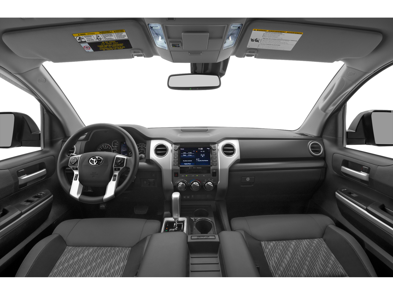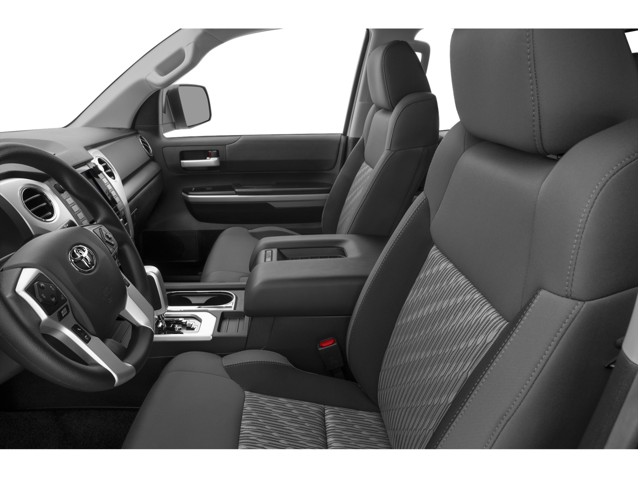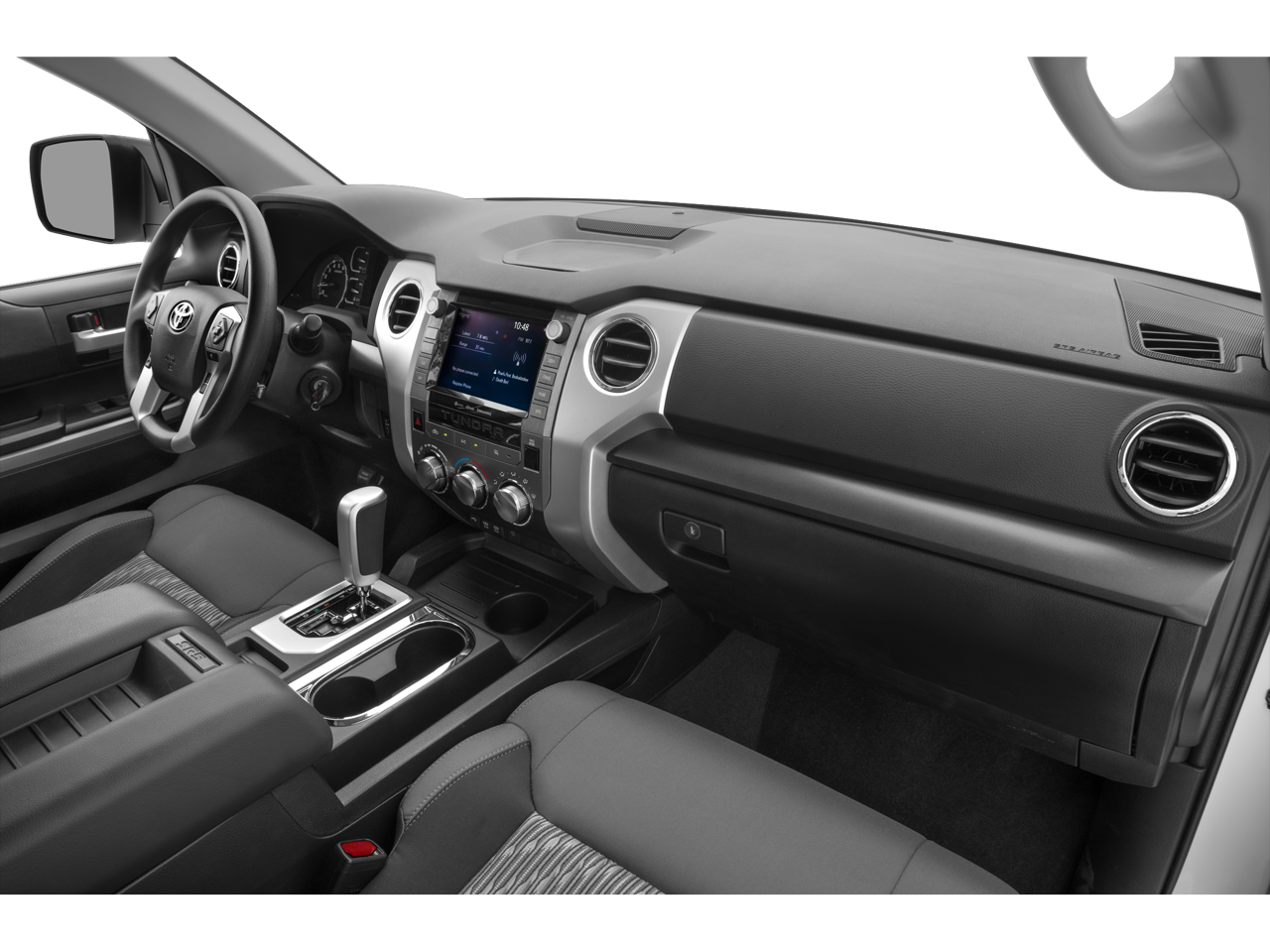 2019 Toyota Tundra SR5 18 x 8J Styled Steel Wheels, 3-Passenger Front Bench Seat, 4-Wheel Disc Brakes, 4.30 Axle Ratio, 6 Speakers, ABS brakes, Air Conditioning, AM/FM radio: SiriusXM, Auto High-beam Headlights, Auto-Dimming Rear-View Mirror, Auto-dimming Rear-View mirror, Brake assist, CD player, Compass, Delay-off headlights, Driver door bin, Driver vanity mirror, Dual front impact airbags, Dual front side impact airbags, Electronic Stability Control, Exterior Parking Camera Rear, Fabric Seat Trim, Front anti-roll bar, Front Bucket Seats, Front Center Armrest w/Storage, Front Fog & Daytime Running Lights, Front fog lights, Front reading lights, Front wheel independent suspension, Fully automatic headlights, Garage door transmitter: HomeLink, Heated door mirrors, HomeLink Universal Transceiver, Illuminated entry, Knee airbag, Leather Shift Knob, Low tire pressure warning, Occupant sensing airbag, Outside temperature display, Overhead airbag, Overhead console, Panic alarm, Passenger door bin, Passenger vanity mirror, Power door mirrors, Power steering, Power windows, Radio: Entune Audio Plus AM/FM/HD Radio w/CD, Rear reading lights, Rear step bumper, Remote keyless entry, SIRIUSXM Satellite Radio, Speed control, Speed-sensing steering, Split folding rear seat, Tachometer, Tilt steering wheel, Traction control, TRD Shift Knob, Trip computer, Variably intermittent wipers, Voltmeter.