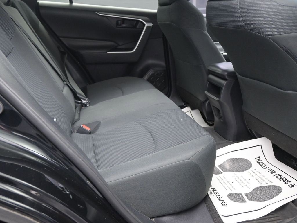Black 2020 Toyota RAV4 LE AWD 8-Speed Automatic 2.5L 4-Cylinder DOHC Dual VVT-i AWD, Black Cloth, 17 Steel Wheels, 4-Wheel Disc Brakes, 6 Speakers, ABS brakes, Air Conditioning, AM/FM radio: SiriusXM, AM/FM Stereo, Apple CarPlay/Android Auto, Auto High-beam Headlights, Axle Ratio: 3.177, Brake assist, Bumpers: body-color, Driver door bin, Driver vanity mirror, Dual front impact airbags, Dual front side impact airbags, Electronic Stability Control, Emergency communication system: Entune Safety Connect, Exterior Parking Camera Rear, Fabric Seat Trim, Four wheel independent suspension, Front anti-roll bar, Front Bucket Seats, Front Center Armrest, Front reading lights, Illuminated entry, Knee airbag, Low tire pressure warning, Occupant sensing airbag, Outside temperature display, Overhead airbag, Overhead console, Panic alarm, Passenger door bin, Passenger vanity mirror, Power door mirrors, Power steering, Power windows, Radio data system, Rear anti-roll bar, Rear seat center armrest, Rear window defroster, Rear window wiper, Remote keyless entry, Roof rack: rails only, Speed control, Speed-sensing steering, Split folding rear seat, Spoiler, Steering wheel mounted audio controls, Tachometer, Telescoping steering wheel, Tilt steering wheel, Traction control, Trip computer, AWD, Black Cloth.27/34 City/Highway MPG