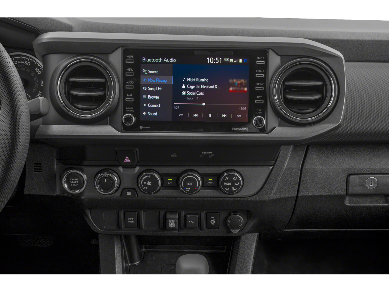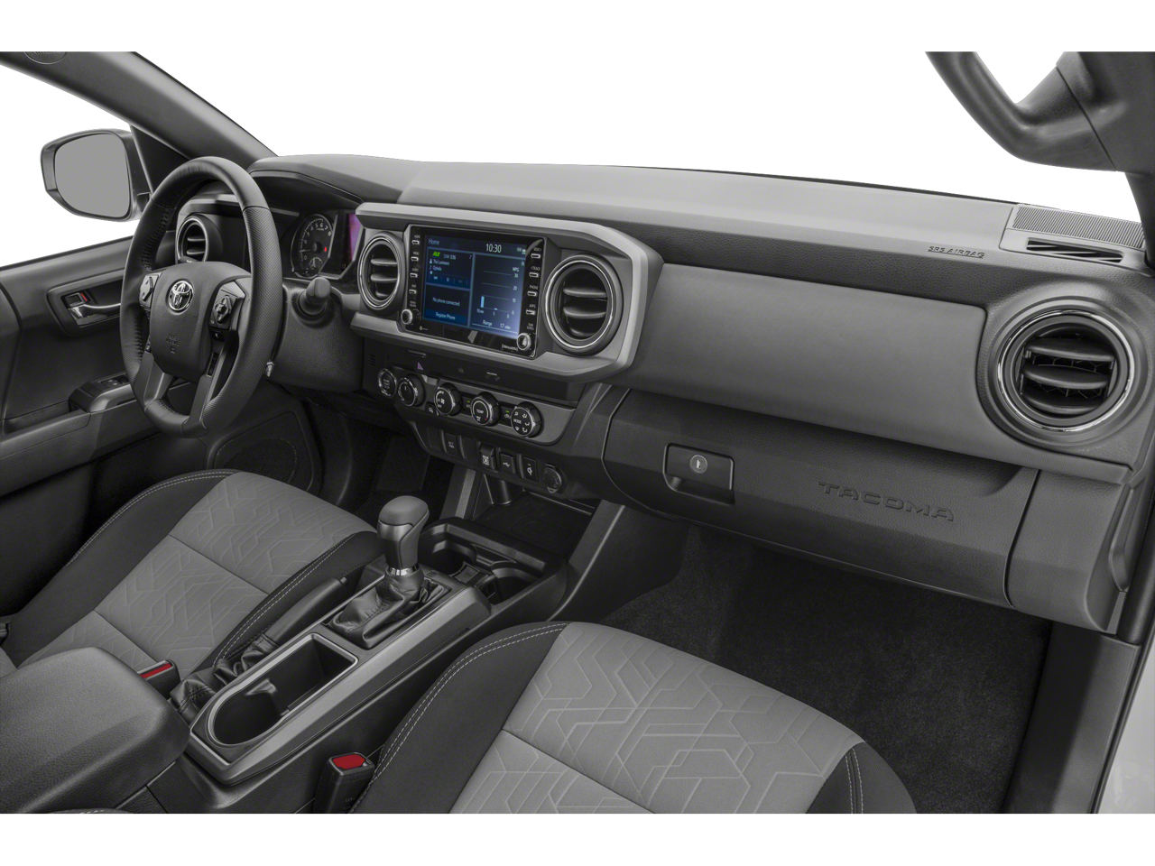 2020 Toyota Tacoma TRD Off-Road V6 120V/400W Deck Mounted AC Power, 6 Speakers, ABS brakes, Air Conditioning, Alloy wheels, AM/FM radio: SiriusXM, Anti-whiplash front head restraints, Apple CarPlay/Android Auto, Auto High-beam Headlights, Auto-dimming Rear-View mirror, Axle Ratio: 3.91, Black Overfenders, Blind Spot Monitor w/Rear Cross Traffic Alert, Brake assist, Bumpers: body-color, Driver door bin, Dual front impact airbags, Dual front side impact airbags, Dual Zone Automatic Climate Control, Electronic Stability Control, Emergency communication system: Safety Connect with 1-year trial, Engine Immobilizer, Exterior Parking Camera Rear, Fabric Seat Trim (FD), Front anti-roll bar, Front Bucket Seats, Front Center Armrest, Front fog lights, Front reading lights, Front wheel independent suspension, Heated door mirrors, Illuminated entry, Knee airbag, Leather Seat Trim, Leather Shift Knob, Low tire pressure warning, Occupant sensing airbag, Outside temperature display, Overhead airbag, Overhead console, Panic alarm, Passenger door bin, Power door mirrors, Power driver seat, Power Sliding Rear Window w/Privacy Glass, Power steering, Power windows, Radio: AM/FM/HD Radio, Radio: Premium w/AM/FM/Nav/App Suite, Rear Parking Assist Sonar, Rear step bumper, Remote keyless entry, Security system, Speed control, Speed-sensing steering, Split folding rear seat, Steering wheel mounted audio controls, Tachometer, Telescoping steering wheel, Tilt steering wheel, Traction control, Trip computer, Turn signal indicator mirrors, Variably intermittent wipers, Wheels: 16 x 7J Machined Contrast Alloy.