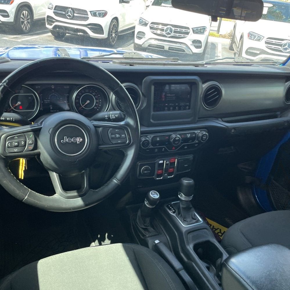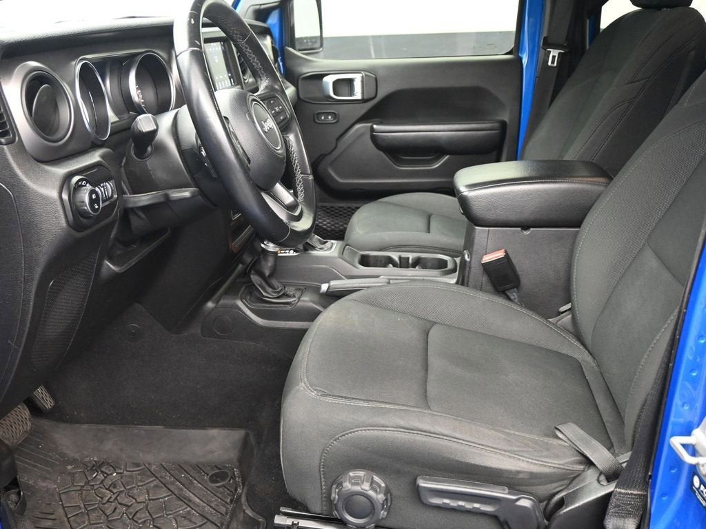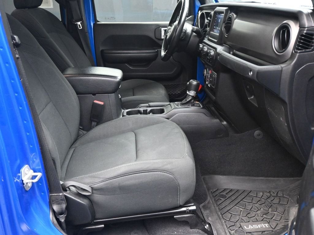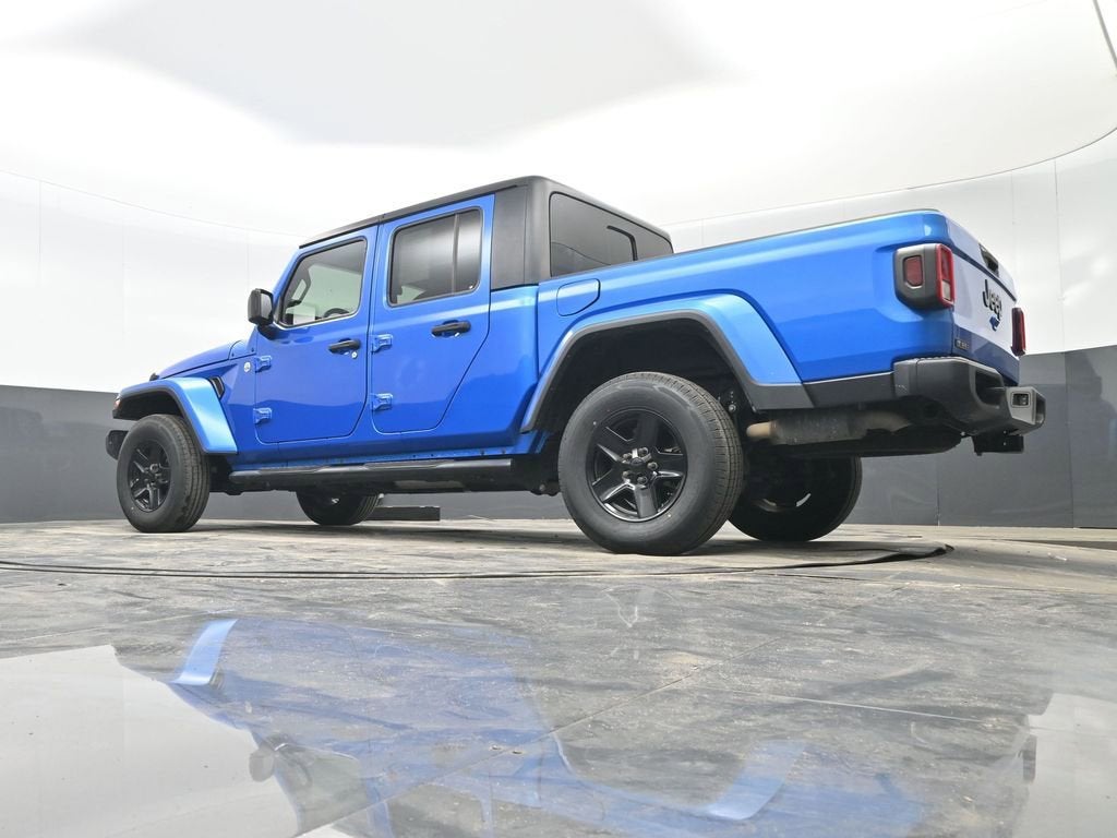 Hydro Blue Pearlcoat 2021 Jeep Gladiator Sport 4WD 8-Speed Automatic 3.6L V6 24V VVT 110 mph Vehicle Max Speed Calibration, 240 Amp Alternator, 3.73 Rear Axle Ratio, 4-Wheel Disc Brakes, 7.0 Touch Screen Display, 8 Speakers, ABS brakes, Air Conditioning, Air Conditioning w/Auto Temperature Control, AM/FM radio, Anti-Lock 4-Wheel Disc Heavy Duty Brakes, Apple CarPlay, Automatic Headlamps, Black 3-Piece Hard Top, Body Color Fender Flares (2-Piece), Brake assist, Class IV Hitch Receiver, Cloth Low-Back Bucket Seats, Cluster 7.0 TFT Color Display, Compass, Convenience Group, Daytime Running Lamp System, Deep Tint Sunscreen Windows, Delay-off headlights, Driver door bin, Driver vanity mirror, Dual front impact airbags, Dual front side impact airbags, Electronic Stability Control, For More Info, Call 800-643-2112, Front 1-Touch Down Power Windows, Front anti-roll bar, Front Bucket Seats, Front Center Armrest w/Storage, Front fog lights, Front reading lights, Google Android Auto, GPS Antenna Input, Heavy-Duty Engine Cooling, Integrated Center Stack Radio, Integrated roll-over protection, Integrated Voice Command w/Bluetooth®, Leather Wrapped Steering Wheel, Low tire pressure warning, Molded in Color Bumper w/Accent Color, Normal Duty Plus Suspension, Normal Duty Suspension, Occupant sensing airbag, Outside temperature display, ParkView Rear Back-Up Camera, Passenger door bin, Passenger vanity mirror, Popular Equipment Package, Power Heated Mirrors, Power steering, Power Tailgate Lock, Quick Order Package 24S Sport S, Radio data system, Radio: Uconnect 3 w/5 Display, Radio: Uconnect 4 w/7 Display, Rear anti-roll bar, Rear reading lights, Remote Keyless Entry, Security Alarm, SiriusXM Radio Service, SiriusXM Satellite Radio, Speed control, Speed Sensitive Power Locks, Split folding rear seat, Sport S, Steering wheel mounted audio controls, Sun Visors w/Illuminated Vanity Mirrors, Tachometer, Technology Group, Telescoping steering wheel, Tilt steering wheel, Traction control, Trailer Hitch Zoom, Trailer Tow Package, Trip computer, USB Host Flip, Variably intermittent wipers, Wheels: 17 x 7.5 Black Aluminum (DISC), Wheels: 17 x 7.5 Black Steel Styled.