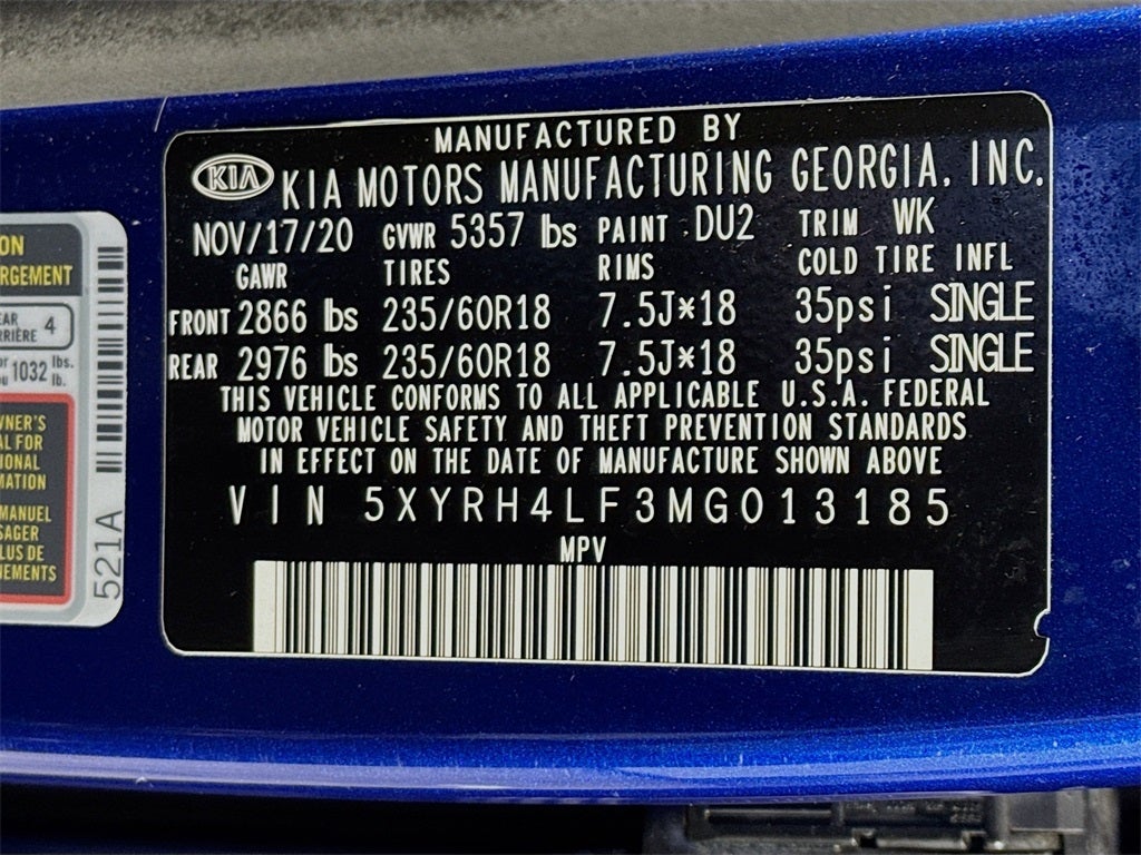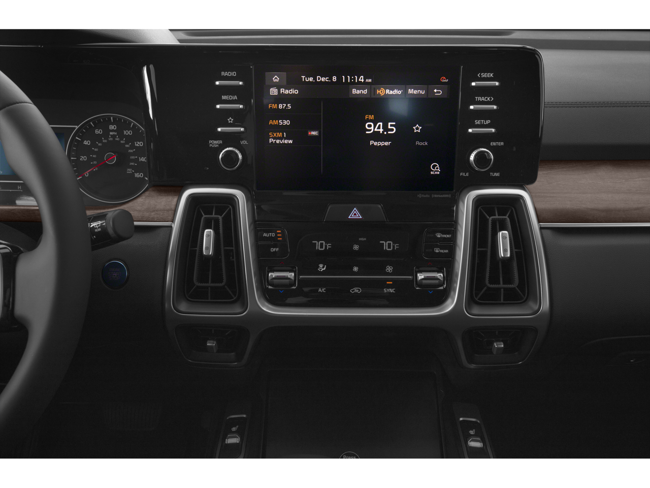 2021 Kia Sorento EX 18 Machine-Finished Alloy Wheels, 3.316 Axle Ratio, 3rd row seats: split-bench, 4-Wheel Disc Brakes, 6 Speakers, ABS brakes, Air Conditioning, Alloy wheels, AM/FM radio: SiriusXM, Apple CarPlay & Android Auto, Auto High-beam Headlights, Automatic temperature control, Brake assist, Bumpers: body-color, Cargo Net, Carpeted Floor Mats, Delay-off headlights, Driver door bin, Driver vanity mirror, Dual front impact airbags, Dual front side impact airbags, Electronic Stability Control, Exterior Parking Camera Rear, Four wheel independent suspension, Front anti-roll bar, Front Bucket Seats, Front Center Armrest, Front dual zone A/C, Front fog lights, Front reading lights, Fully automatic headlights, Heated door mirrors, Heated Front Bucket Seats, Heated front seats, Illuminated entry, Knee airbag, Leather Shift Knob, Leather steering wheel, Low tire pressure warning, Occupant sensing airbag, Outside temperature display, Overhead airbag, Overhead console, Panic alarm, Passenger door bin, Passenger vanity mirror, Power door mirrors, Power driver seat, Power Liftgate, Power steering, Power windows, Premium Leatherette Seat Trim, Radio data system, Radio: AM/FM Audio System, Rear air conditioning, Rear anti-roll bar, Rear reading lights, Rear window defroster, Rear window wiper, Remote keyless entry, Roof rack: rails only, Security system, Speed control, Speed-sensing steering, Split folding rear seat, Spoiler, Steering wheel mounted audio controls, Tachometer, Telescoping steering wheel, Tilt steering wheel, Traction control, Trip computer, Turn signal indicator mirrors, Variably intermittent wipers, Wheel Locks.
