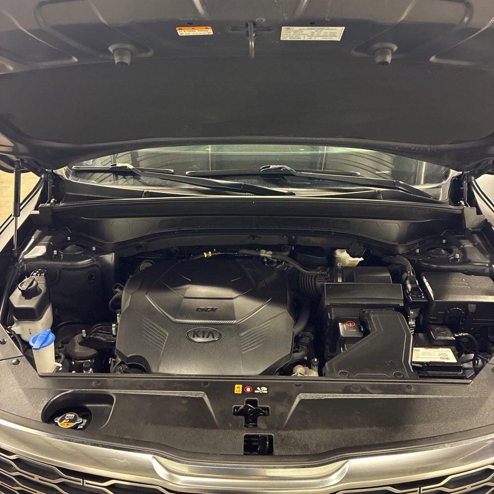 Gravity Gray 2021 Kia Telluride EX FWD 8-Speed Automatic 3.8L V6 DGI DOHC Dual CVVT 2nd Row Captain Chairs, 3.648 Axle Ratio, 3rd row seats: split-bench, 4-Wheel Disc Brakes, 6 Speakers, ABS brakes, Air Conditioning, Alloy wheels, AM/FM radio: SiriusXM, Apple CarPlay & Android Auto, Auto-dimming Rear-View mirror, Automatic temperature control, Brake assist, Bumpers: body-color, Carpeted Floor Mats, Compass, Delay-off headlights, Driver door bin, Driver vanity mirror, Dual front impact airbags, Dual front side impact airbags, Electronic Stability Control, Emergency communication system: 911 Connect, EX Premium Package, Four wheel independent suspension, Front anti-roll bar, Front Bucket Seats, Front Center Armrest, Front dual zone A/C, Front reading lights, Fully automatic headlights, Heated & Ventilated Front Bucket Seats, Heated door mirrors, Heated front seats, Illuminated entry, Knee airbag, Leather Seat Trim, Leather Shift Knob, Leather steering wheel, LED Headlamps, Low tire pressure warning, Navigation System, Occupant sensing airbag, Outside temperature display, Overhead airbag, Overhead console, Panic alarm, Passenger door bin, Passenger vanity mirror, Power door mirrors, Power driver seat, Power Liftgate, Power moonroof, Power passenger seat, Power steering, Power windows, Radio data system, Radio: AM/FM/SIRIUS Display Audio, Rear air conditioning, Rear anti-roll bar, Rear audio controls, Rear reading lights, Rear seat center armrest, Rear window defroster, Rear window wiper, Reclining 3rd row seat, Remote keyless entry, Roof rack: rails only, Satin Chrome Roof Rails, Security system, Side Step Bars, Smart Key w/ Push Button and Remote Start, Speed control, Speed-sensing steering, Split folding rear seat, Spoiler, Steering wheel mounted audio controls, Tachometer, Telescoping steering wheel, Tilt steering wheel, Traction control, Trip computer, Turn signal indicator mirrors, Variably intermittent wipers, Ventilated front seats, Wheel Locks, Wheels: 7.5 x 18 Machined Finish Alloy, Wheels: 7.5 x 20 Machined Finish Alloy.