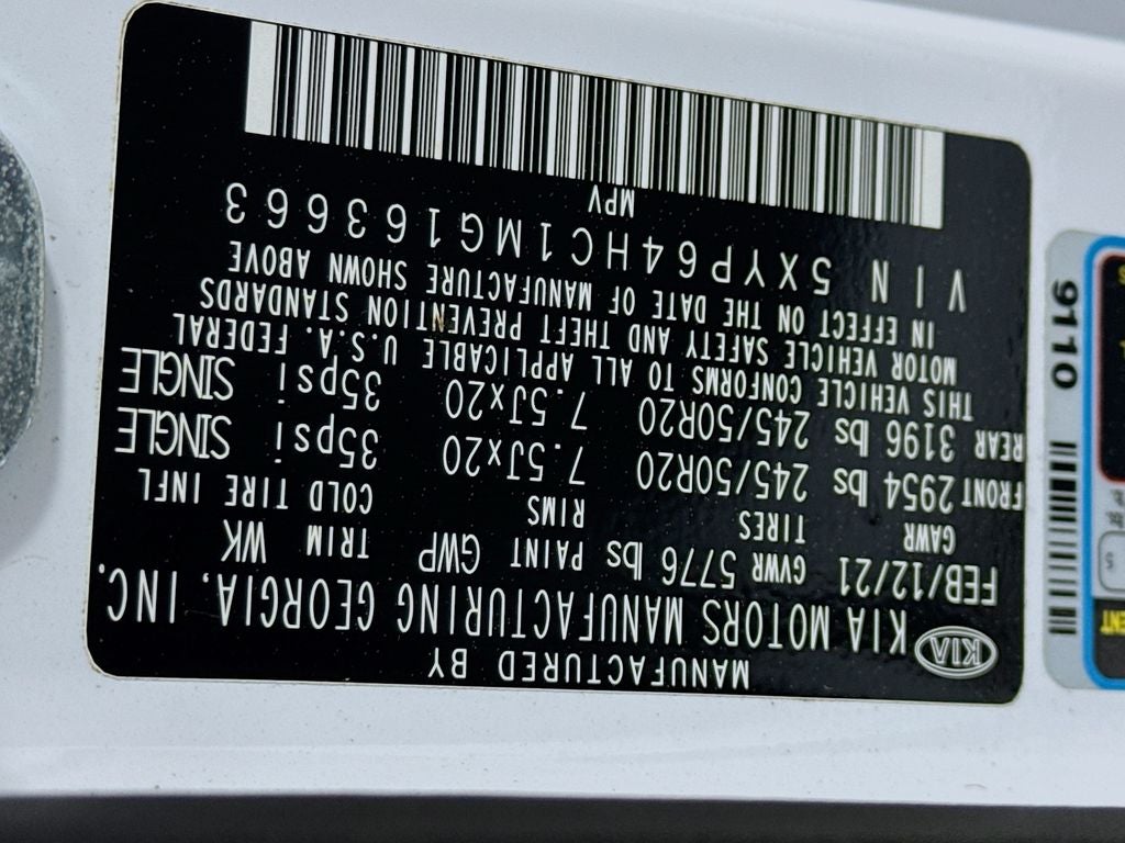 2021 Kia Telluride S 3.648 Axle Ratio, 3rd row seats: split-bench, 4-Wheel Disc Brakes, 6 Speakers, ABS brakes, Air Conditioning, Alloy wheels, AM/FM radio: SiriusXM, Apple CarPlay & Android Auto, Brake assist, Bumpers: body-color, Carpeted Floor Mats, Delay-off headlights, Driver door bin, Driver vanity mirror, Dual front impact airbags, Dual front side impact airbags, EC Mirror w/Compass & Homelink, Electronic Stability Control, Emergency communication system: 911 Connect, Four wheel independent suspension, Front anti-roll bar, Front Bucket Seats, Front Center Armrest, Front reading lights, Fully automatic headlights, Heated door mirrors, Heated Front Bucket Seats, Heated front seats, Illuminated entry, Illuminated Scuff Plates, Knee airbag, Leather Shift Knob, Leather steering wheel, Low tire pressure warning, Occupant sensing airbag, Outside temperature display, Overhead airbag, Overhead console, Panic alarm, Passenger door bin, Passenger vanity mirror, Power door mirrors, Power driver seat, Power moonroof, Power steering, Power windows, Radio data system, Radio: AM/FM/SIRIUS Display Audio, Rear air conditioning, Rear anti-roll bar, Rear Bumper Protector, Rear reading lights, Rear window defroster, Rear window wiper, Reclining 3rd row seat, Remote keyless entry, Roof rack: rails only, Security system, Smart Key w/ Push Button and Remote Start, SOFINO Leathertte Seat Trim, Speed control, Speed-sensing steering, Split folding rear seat, Spoiler, Steering wheel mounted audio controls, Tachometer, Telescoping steering wheel, Tilt steering wheel, Traction control, Trip computer, Turn signal indicator mirrors, Variably intermittent wipers, Wheels: 7.5 x 20 Machined Finish Alloy.