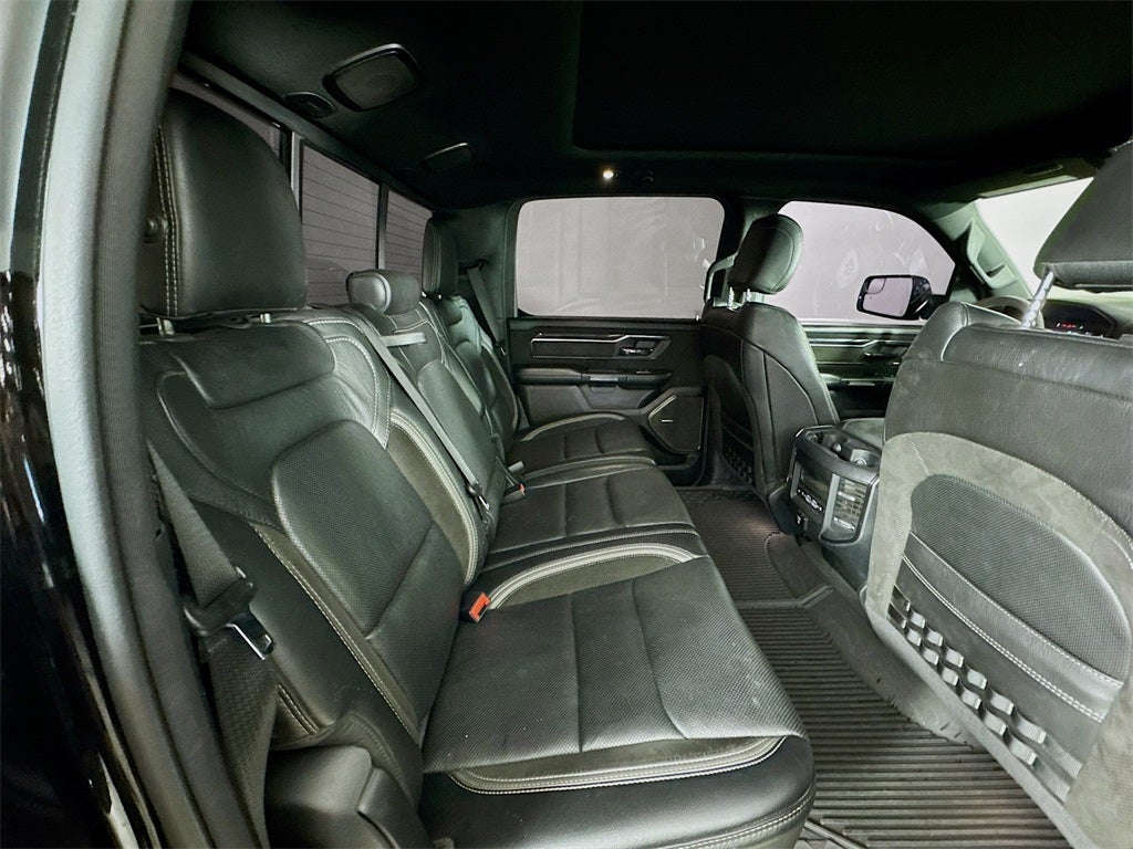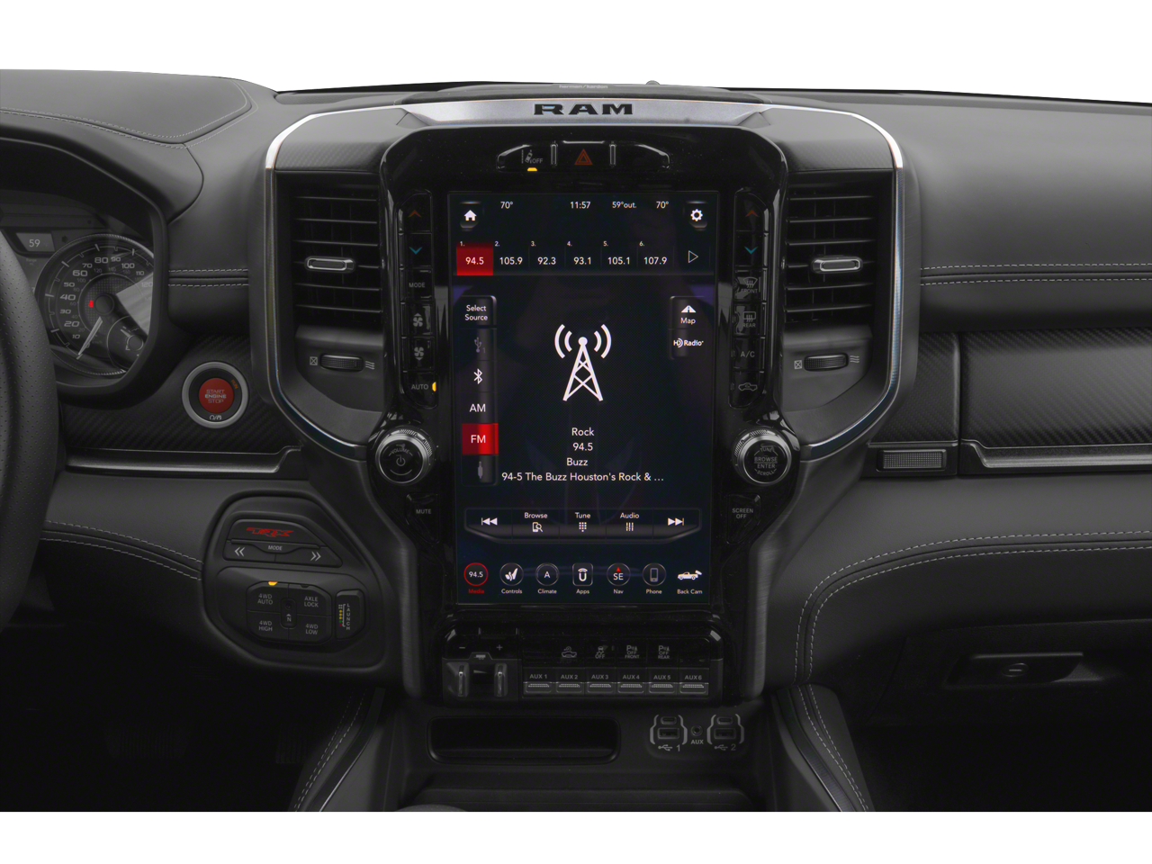 2021 Ram 1500 TRX 10 Speakers, 3.55 Rear Axle Ratio, 4 Way Front Headrests, 4-Wheel Disc Brakes, ABS brakes, Adaptive Cruise Control w/Stop & Go, Adaptive suspension, Advanced Safety Group, Air Conditioning, Alloy wheels, AM/FM radio: SiriusXM with 360L, Apple CarPlay/Android Auto, Auto High-beam Headlights, Auto-dimming door mirrors, Auto-dimming Rear-View mirror, Automatic temperature control, Bed Utility Group, Black Exterior Mirrors, Blind Spot & Cross Path Detection, Body Color Door Handles, Brake assist, Bucket Seats, Cloth/Vinyl Bucket Seats, Compass, Delay-off headlights, Dome Dual LED Reading Lamp, Driver door bin, Driver Seat Memory, Driver/Passenger Wrapped Assist Handles, Dual front impact airbags, Dual front side impact airbags, Dual-Pane Panoramic Sunroof, Electronic Stability Control, Emergency communication system: SiriusXM Guardian, Exterior Mirrors Courtesy Lamps, Exterior Mirrors w/Heating Element, Exterior Mirrors w/Memory, Exterior Mirrors w/Supplemental Signals, Front anti-roll bar, Front Bucket Seats, Front Center Armrest w/Storage, Front Door Accent Lighting, Front dual zone A/C, Front fog lights, Front License Plate Bracket, Front reading lights, Front wheel independent suspension, Full Length Premium Upgraded Floor Console, Fully automatic headlights, harman/kardon 19 Speaker Premium Sound, Heads-Up Display, Heated door mirrors, Heated Front Seats, Heated Second Row Seats, Heated Steering Wheel, Illuminated entry, IP LED Ambient Light Pipe, Lane Keep Assist, Leather Shift Knob, Leather steering wheel, Leather Trimmed Bucket Seats, Leather/Suede Flat-Bottom Steering Wheel, LED CHMSL Lamp, Low tire pressure warning, Luxury Front Door Trim Panel, MOPAR 4 Adjustable Cargo Tie-Down Hooks, MOPAR Deployable Bed Step, MOPAR Spray In Bedliner, Navigation System, Occupant sensing airbag, Outside temperature display, Overhead airbag, Overhead console, Panic alarm, ParkSense Front/Rear Park Assist w/Stop, ParkView Rear Back-Up Camera, Passenger door bin, Passenger vanity mirror, Pedestrian Emergency Braking, Pick-Up Box Lighting, Power 4-Way Driver Lumbar Adjust, Power 4-Way Passenger Lumbar Adjust, Power 8-Way Driver & Passenger Seats, Power Adjustable Pedals w/Memory, Power door mirrors, Power driver seat, Power steering, Power windows, Power-Folding Mirrors, Premium Wrapped IP Bezel, Quick Order Package 29Y, Radio data system, Radio: Uconnect 12 w/Navigation, Radio/Driver Seat/Mirrors/Pedals Memory, Rain Sensitive Windshield Wipers, Rear 60/40 Folding Split Recline Seat, Rear Door Accent Lighting, Rear seat center armrest, Rear step bumper, Rear Underseat Compartment Storage, Rear Window Defroster, Rearview Autodim Digital Display Mirror, Remote keyless entry, Remote Proximity Keyless Entry, Remote Start System, Remote Tailgate Release, Security system, Speed control, Split folding rear seat, Sport steering wheel, Steering wheel mounted audio controls, Sun Visors w/Illuminated Vanity Mirrors, Surround View Camera System, Tachometer, Technology Group, Telescoping steering wheel, Tilt steering wheel, Traction control, Trailer Brake Control, Trip computer, TRX Level 2 Equipment Group, Turn signal indicator mirrors, Universal Garage Door Opener, Variably intermittent wipers, Ventilated Front Seats, Ventilated Rear Seats, Voltmeter, Wheels: 18 x 9 Black Paint/Polish Aluminum, Wireless Charging Pad.