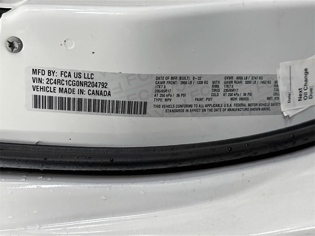 2022 Chrysler Voyager LX 17 x 7 Aluminum Wheels, 3.25 Axle Ratio, 3rd row seats: split-bench, 4-Wheel Disc Brakes, 6 Speakers, ABS brakes, Air Conditioning, Alloy wheels, AM/FM radio: SiriusXM, Apple CarPlay/Android Auto, Automatic temperature control, Black Seats, Brake assist, Bumpers: body-color, Cloth Bucket Seats, Compass, Delay-off headlights, Door auto-latch, Driver door bin, Driver vanity mirror, Driver's Seat Mounted Armrest, Dual front impact airbags, Dual front side impact airbags, Electronic Stability Control, Four wheel independent suspension, Front anti-roll bar, Front Bucket Seats, Front dual zone A/C, Front reading lights, Fully automatic headlights, Heated door mirrors, Heated front seats, Heated steering wheel, Illuminated entry, Knee airbag, Low tire pressure warning, Occupant sensing airbag, Outside temperature display, Overhead airbag, Overhead console, Panic alarm, ParkView Rear Back-Up Camera, Passenger door bin, Passenger seat mounted armrest, Passenger vanity mirror, Power door mirrors, Power driver seat, Power Liftgate, Power steering, Power windows, Quick Order Package 27E, Radio data system, Radio: Uconnect 5 w/7 Display, Rear air conditioning, Rear window defroster, Rear window wiper, Reclining 3rd row seat, Remote keyless entry, Security system, Speed control, Split folding rear seat, Spoiler, Steering wheel mounted audio controls, Tachometer, Telescoping steering wheel, Tilt steering wheel, Touring Suspension, Traction control, Trip computer, Variably intermittent wipers, Voltmeter.