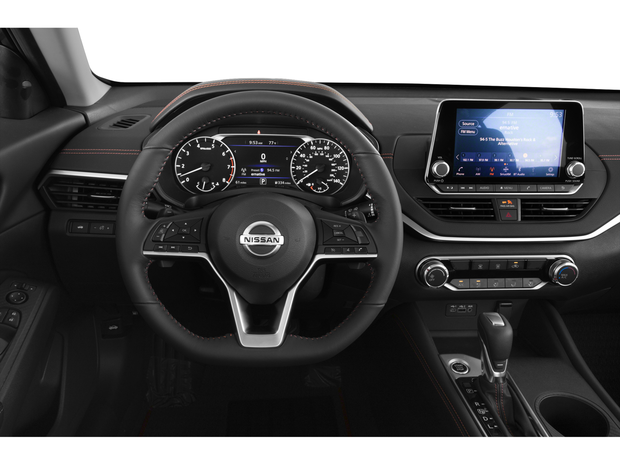 2022 Nissan Altima 2.5 SR 4-Wheel Disc Brakes, 6 Speakers, ABS brakes, Air Conditioning, Alloy wheels, AM/FM radio: SiriusXM, Auto High-beam Headlights, Blind Spot Warning, Brake assist, Bumpers: body-color, Delay-off headlights, Driver door bin, Driver vanity mirror, Dual front impact airbags, Dual front side impact airbags, Electronic Stability Control, Four wheel independent suspension, Front anti-roll bar, Front Bucket Seats, Front Center Armrest, Front reading lights, Front Sport Bucket Seats, Fully automatic headlights, Illuminated entry, Knee airbag, Leather Shift Knob, Low tire pressure warning, NissanConnect featuring Apple CarPlay and Android Auto, Occupant sensing airbag, Outside temperature display, Overhead airbag, Overhead console, Panic alarm, Passenger door bin, Passenger vanity mirror, Power door mirrors, Power driver seat, Power steering, Power windows, Radio data system, Radio: AM/FM Audio System, Rear anti-roll bar, Rear Parking Sensors, Rear reading lights, Rear seat center armrest, Rear side impact airbag, Rear window defroster, Remote keyless entry, Security system, Speed control, Speed-sensing steering, Speed-Sensitive Wipers, Split folding rear seat, Sport Seat Trim, Sport steering wheel, SR Floor Mats/Trunk Mat/Hideaway Nets, Steering wheel mounted audio controls, Tachometer, Telescoping steering wheel, Tilt steering wheel, Traction control, Trip computer, Variably intermittent wipers, Wheels: 19 Machined Alloy.