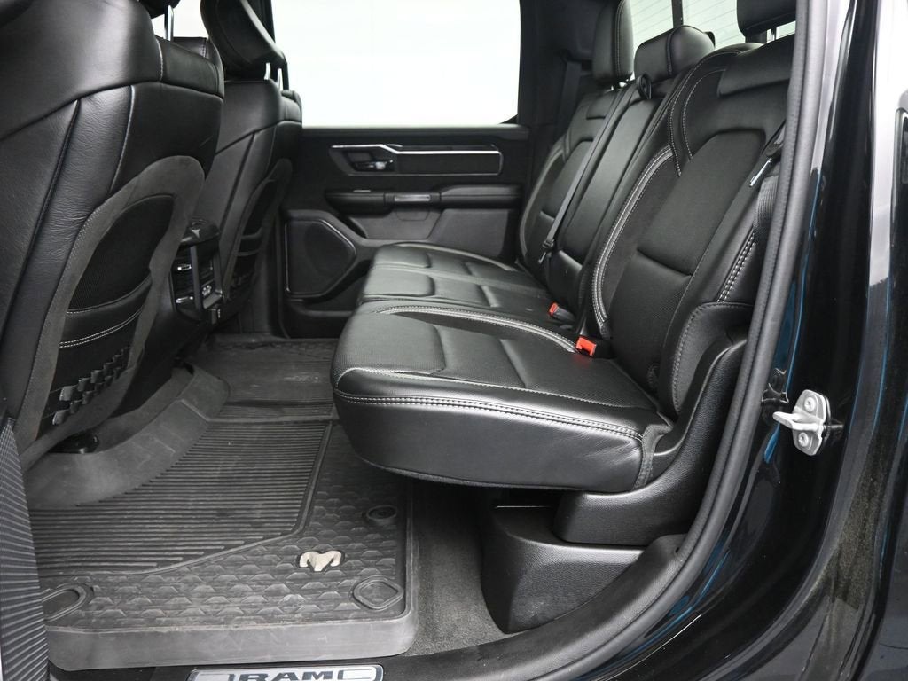 Diamond Black Crystal Pearlcoat 2022 Ram 1500 TRX 4WD 8-Speed Automatic 6.2L Supercharged HEMI V8 SRT #2 Seat Foam Cushion, 10 Speakers, 3.55 Rear Axle Ratio, 4 Way Front Headrests, 4-Wheel Disc Brakes, ABS brakes, Adaptive suspension, Air Conditioning, Alloy wheels, AM/FM radio: SiriusXM with 360L, Apple CarPlay/Android Auto, Auto High-beam Headlights, Auto-dimming door mirrors, Auto-dimming Rear-View mirror, Automatic temperature control, Black Exterior Mirrors, Body Color Door Handles, Brake assist, Bucket Seats, Center Console Parts Module, Cloth/Vinyl Bucket Seats, Compass, Delay-off headlights, Dome Dual LED Reading Lamp, Driver door bin, Driver/Passenger Wrapped Assist Handles, Dual front impact airbags, Dual front side impact airbags, Dual-Pane Panoramic Sunroof, Electronic Stability Control, Exterior Mirrors Courtesy Lamps, Exterior Mirrors w/Heating Element, Exterior Mirrors w/Supplemental Signals, Front anti-roll bar, Front Bucket Seats, Front Center Armrest w/Storage, Front Door Accent Lighting, Front dual zone A/C, Front fog lights, Front reading lights, Front Seat Back Map Pockets, Front wheel independent suspension, Full Length Premium Upgraded Floor Console, Fully automatic headlights, Heated door mirrors, Heated Front Seats, Heated Steering Wheel, Illuminated entry, IP LED Ambient Light Pipe, Leather Shift Knob, Leather steering wheel, Leather Trimmed Bucket Seats, Low tire pressure warning, Luxury Front Door Trim Panel, MOPAR Bright Pedal Kit, MOPAR Off-Road Style Running Boards, Navigation System, Occupant sensing airbag, Outside temperature display, Overhead airbag, Overhead console, Panic alarm, ParkSense Front/Rear Park Assist w/Stop, ParkView Rear Back-Up Camera, Passenger door bin, Passenger vanity mirror, Pick-Up Box Lighting, Power 4-Way Driver Lumbar Adjust, Power 4-Way Passenger Lumbar Adjust, Power 8-Way Driver & Passenger Seats, Power Adjustable Pedals, Power door mirrors, Power driver seat, Power steering, Power windows, Power-Folding Mirrors, Premium Wrapped IP Bezel, Quick Order Package 29Y, Radio data system, Radio: Uconnect 5 Nav w/12.0 Display, Rain Sensitive Windshield Wipers, Rear 60/40 Folding Seat, Rear Door Accent Lighting, Rear seat center armrest, Rear step bumper, Rear Underseat Compartment Storage, Rear Window Defroster, Remote keyless entry, Security system, Speed control, Split folding rear seat, Sport steering wheel, Steering wheel mounted audio controls, Sun Visors w/Illuminated Vanity Mirrors, Tachometer, Telescoping steering wheel, Tilt steering wheel, Traction control, Trip computer, TRX Level 1 Equipment Group, Turn signal indicator mirrors, Universal Garage Door Opener, Variably intermittent wipers, Voltmeter, Wheels: 18 x 9 Black Paint/Polish Aluminum.