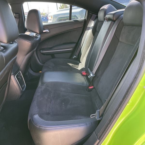 2023 Dodge Charger R/T Scat Pack Widebody 1-Yr SiriusXM Guardian Trial, 19 harman/kardon GreenEdge Speakers, 2-Piece Shark Fin Antenna, 4-Wheel Disc Brakes, 4G LTE Wi-Fi Hot Spot, 6 Speakers, 8.4 Touchscreen Display, ABS brakes, Adaptive Damping Suspension (DISC), Air Conditioning, All Speed Traction Control, Alloy wheels, AM/FM radio: SiriusXM, Anti-whiplash front head restraints, Apple CarPlay, Apple CarPlay/Android Auto, Auto Adjust In Reverse Exterior Mirrors, Auto-Dimming Exterior Driver Mirror, Auto-dimming Rear-View mirror, Automatic temperature control, Black-Edged Premium Floormats, Blind Spot & Cross Path Detection, Blind Spot Memory/Power/Heat Mirror, Body Color Fender Flares, Brake assist, Brembo 6-Pot Fixed Front Caliper Brakes, Bumpers: body-color, Cloth Performance Seats w/Heat, Compass, Delay-off headlights, Driver & Passenger Lower LED Lamps, Driver door bin, Driver vanity mirror, Dual front impact airbags, Dual front side impact airbags, Electronic Stability Control, Emergency communication system: SiriusXM Guardian, Exterior Mirrors Courtesy Lamps, Exterior Mirrors w/Heating Element, Flat-Bottom Steering Wheel, For Details, Visit DriveUconnect.com, Four wheel independent suspension, Front anti-roll bar, Front Bucket Seats, Front Center Armrest, Front dual zone A/C, Front fog lights, Front Overhead LED Lighting, Front reading lights, Fully automatic headlights, Garage door transmitter: HomeLink, Google Android Auto, GPS Antenna Input, harman/kardon Audio Group, harman/kardon GreenEdge Amp, HD Radio, Heated door mirrors, Heated Front Seats, Heated front seats, Heated steering wheel, Illuminated entry, Integrated Center Stack Radio, Integrated Voice Command w/Bluetooth®, Knee airbag, Leather Shift Knob, Low tire pressure warning, Media Hub (2 USB, AUX), Occupant sensing airbag, Outside temperature display, Overhead airbag, Overhead console, Panic alarm, ParkView Rear Back-Up Camera, Passenger door bin, Passenger vanity mirror, Performance Shift Indicator, Plus Group, Power 2-Way Driver Lumbar Adjust, Power 2-Way Passenger Lumbar Adjust, Power door mirrors, Power driver seat, Power Front Driver/Passenger Seats, Power steering, Power Tilt/Telescope Steering Column, Power windows, Premium-Stitched Dash Panel, Quick Order Package 21V Scat Pack Widebody, Radio: Uconnect 4C w/8.4 Display, Radio/Driver Seat/Mirrors Memory, Rear anti-roll bar, Rear Armrest w/Cupholder Seat, Rear reading lights, Rear seat center armrest, Rear window defroster, Remote keyless entry, Scat Pack Logo Nappa/Alcantara Seat, Security system, Speed control, Speed-Sensitive Wipers, Split folding rear seat, Spoiler, Sport steering wheel, Steering wheel mounted audio controls, Surround Sound, Tachometer, Telescoping steering wheel, Tilt steering wheel, Traction control, Trip computer, USB Host Flip, Variably intermittent wipers, Ventilated Front Seats, Wheels: 20 x 11 Carbon Black Aluminum, Wheels: 20 x 9 Lo Gloss Granite Crystal, Widebody Competition Suspension, Widebody Package.