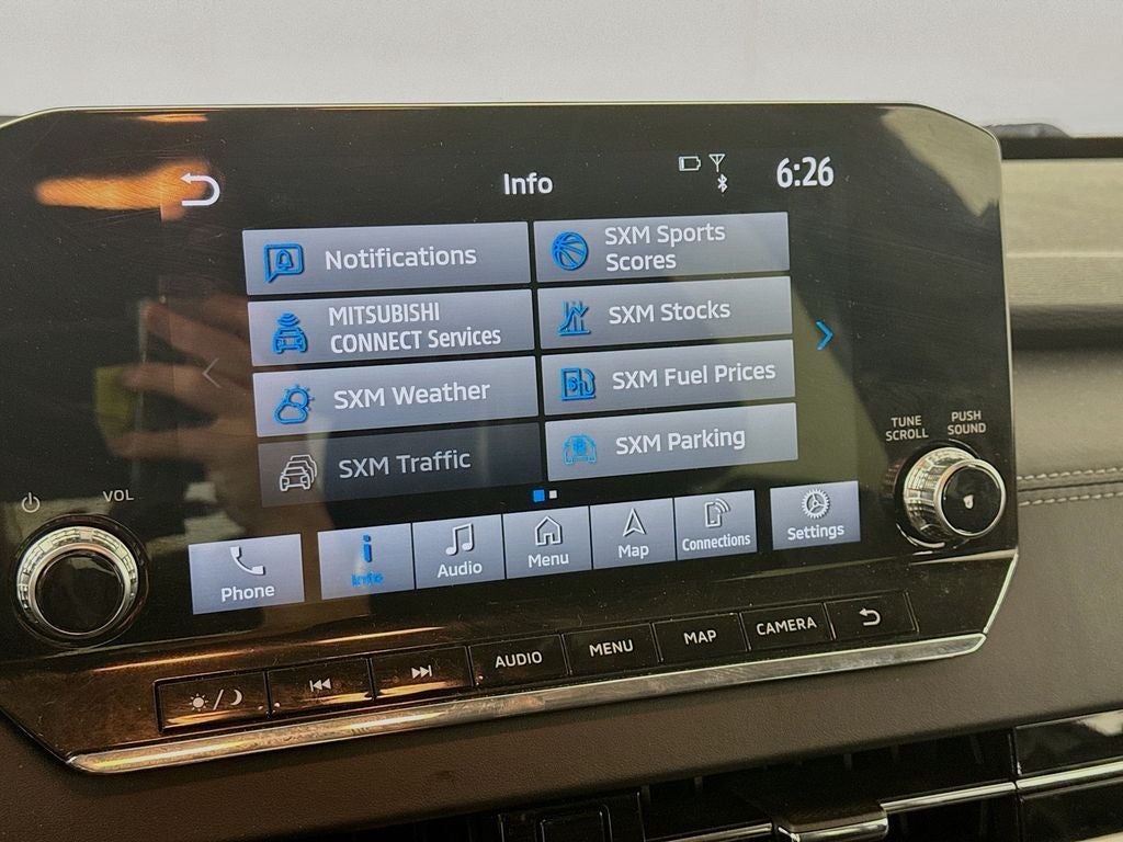 2024 Mitsubishi Outlander SE 3rd row seats: split-bench, 4-Wheel Disc Brakes, 5.694 Axle Ratio, 6 Speakers, ABS brakes, Air Conditioning, Alloy wheels, AM/FM radio: SiriusXM, Android Auto & Apple CarPlay, Auto High-beam Headlights, Automatic temperature control, Brake assist, Bumpers: body-color, Driver door bin, Driver vanity mirror, Dual front impact airbags, Dual front side impact airbags, Electronic Stability Control, Emergency communication system: Mitsubishi Connect w/ 24-month trial, Exterior Parking Camera Rear, Four wheel independent suspension, Front anti-roll bar, Front Bucket Seats, Front Center Armrest w/Storage, Front dual zone A/C, Front fog lights, Front reading lights, Fully automatic headlights, Heated door mirrors, Heated Front Bucket Seats, Heated front seats, Illuminated entry, Knee airbag, Leather Shift Knob, Leather steering wheel, Low tire pressure warning, Navigation System, Occupant sensing airbag, Outside temperature display, Overhead airbag, Overhead console, Panic alarm, Passenger door bin, Passenger vanity mirror, Power door mirrors, Power driver seat, Power Liftgate, Power steering, Power windows, Radio data system, Radio: AM/FM 9.0 Navigation w/Smartphone Link, Rain sensing wipers, Rear anti-roll bar, Rear seat center armrest, Rear side impact airbag, Rear window defroster, Rear window wiper, Reclining 3rd row seat, Remote keyless entry, Security system, Speed control, Speed-Sensitive Wipers, Split folding rear seat, Spoiler, Steering wheel mounted audio controls, Synthetic Leather Seat Trim, Tachometer, Telescoping steering wheel, Tilt steering wheel, Traction control, Trip computer, Turn signal indicator mirrors, Variably intermittent wipers, Wheels: 20 Two-Tone Alloy.